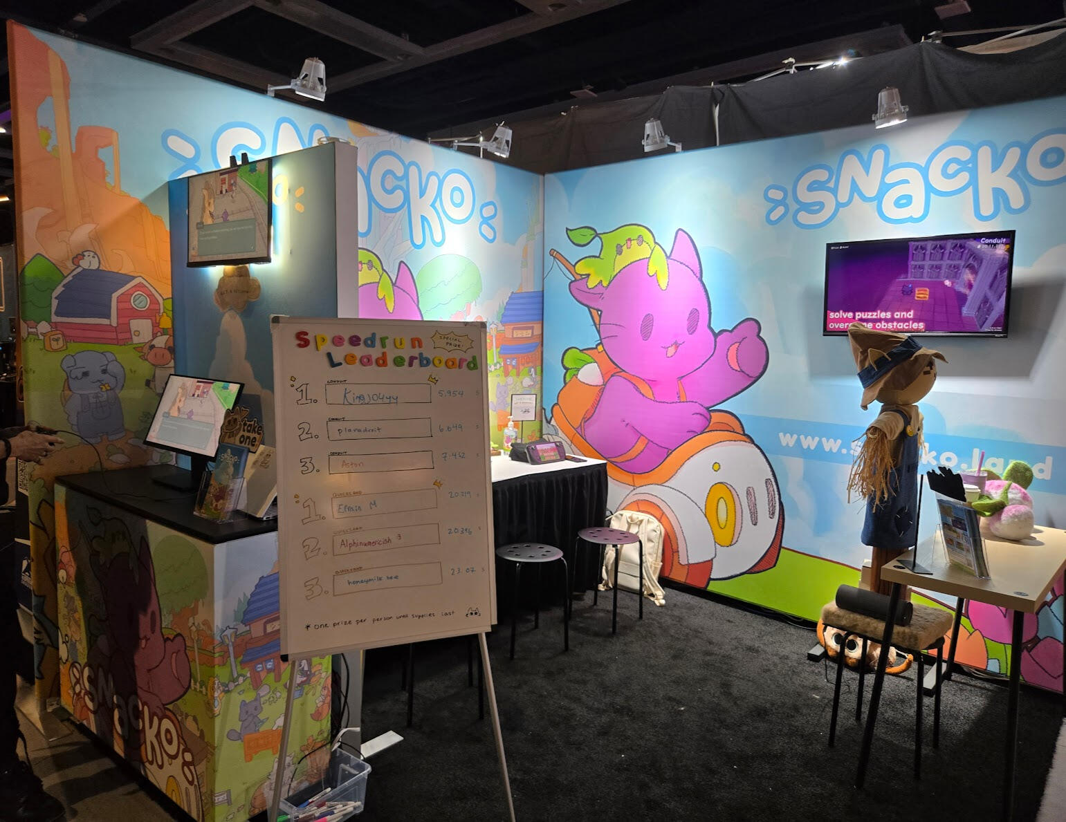 In addition to taking screenshots for Snacko's Steam page, I was also responsible for the copywriting, store assets, and library assets as well as the key art illustration. I also made all GIFs, images, and graphics used in Snacko's marketing and social media accounts.I was also responsible for designing and setting up Snacko's convention booths, business cards, and merch for shows including Canada's GDX and Seattle's PAX West.