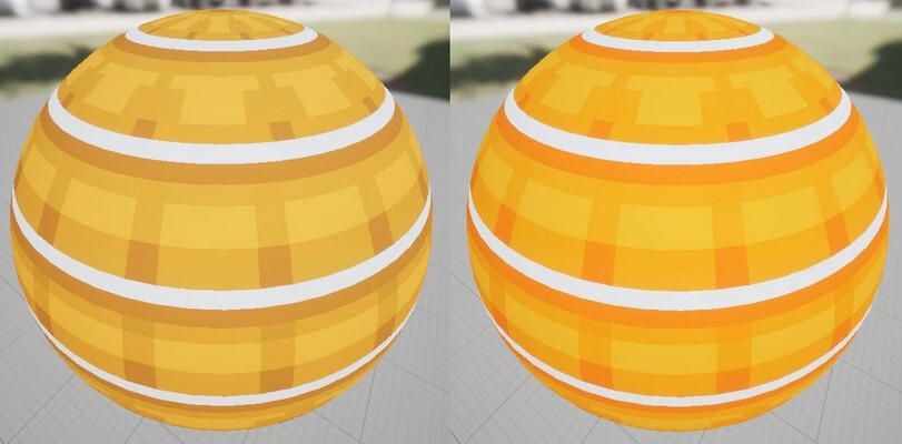For simplicity sake, dyeable materials are set up as colour → blend → textureRegions that are “dye-able” are controlled by a black and white mask. The dyes are a colour multiplied onto a texture. The texture is not grayscale - shadows are often tinted with purple or blue to give it more depth.