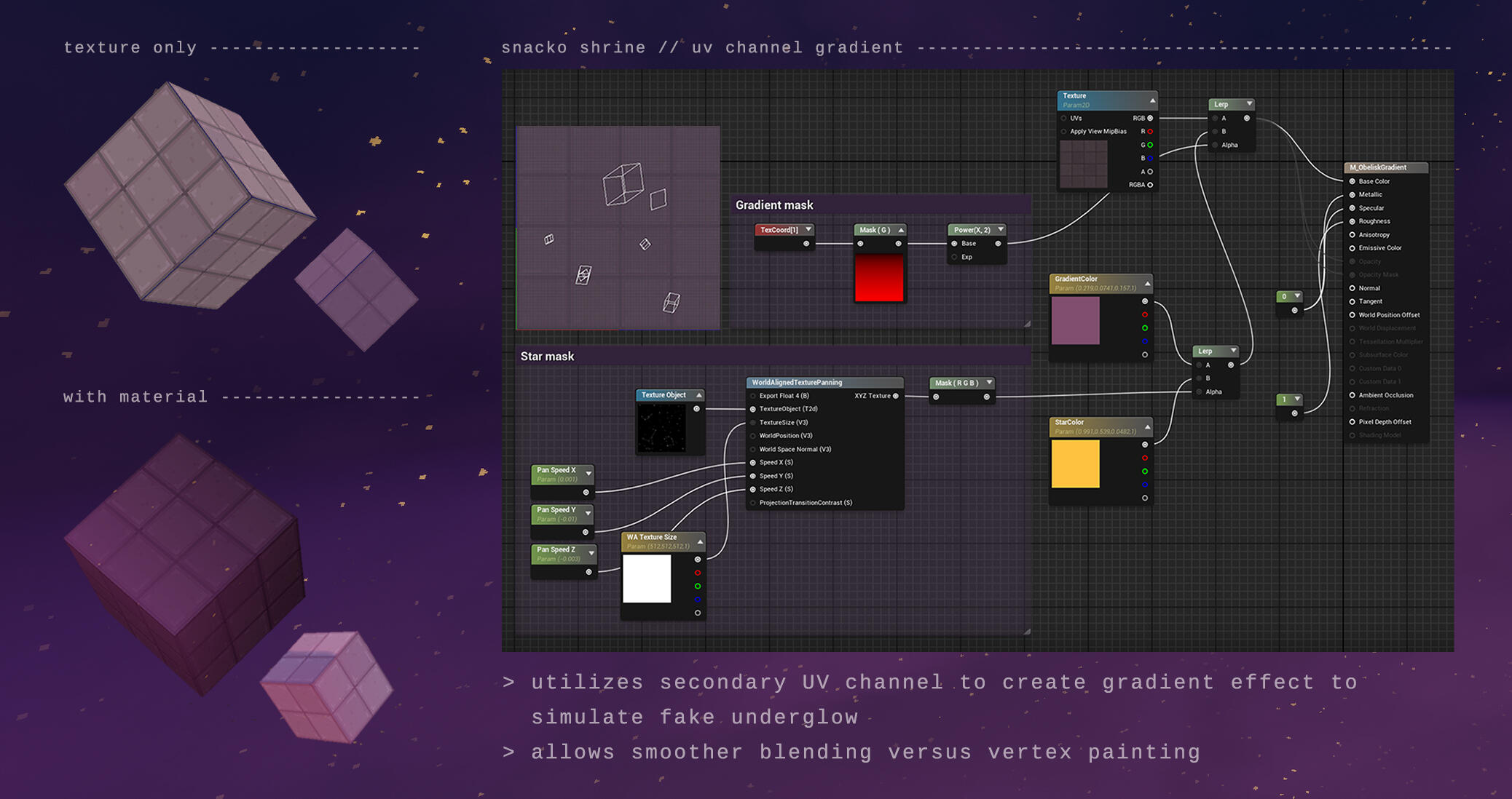 Tasked with creating a mod kit for puzzle dungeons two weeks before early access launch, I utilized shaders and secondary UV sets to create the atmospheric shrine interiors.